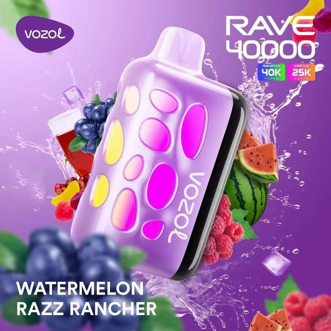 Vozol RAVE 40000 Watermelon Razz Rancher – Karpuz & Ahududu Aromalı Ferah ve Tatlı İçim